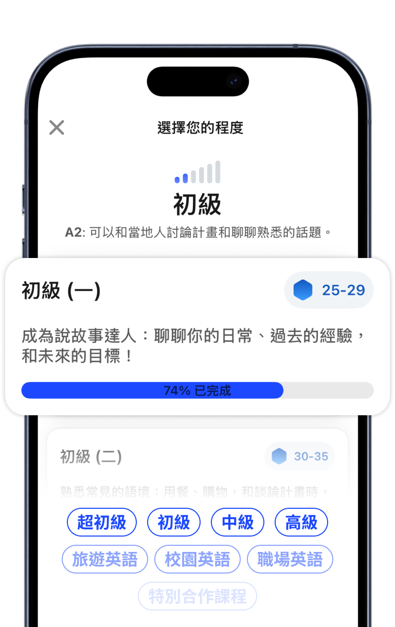 不管你在哪個程度,都有最適合的練習內容,