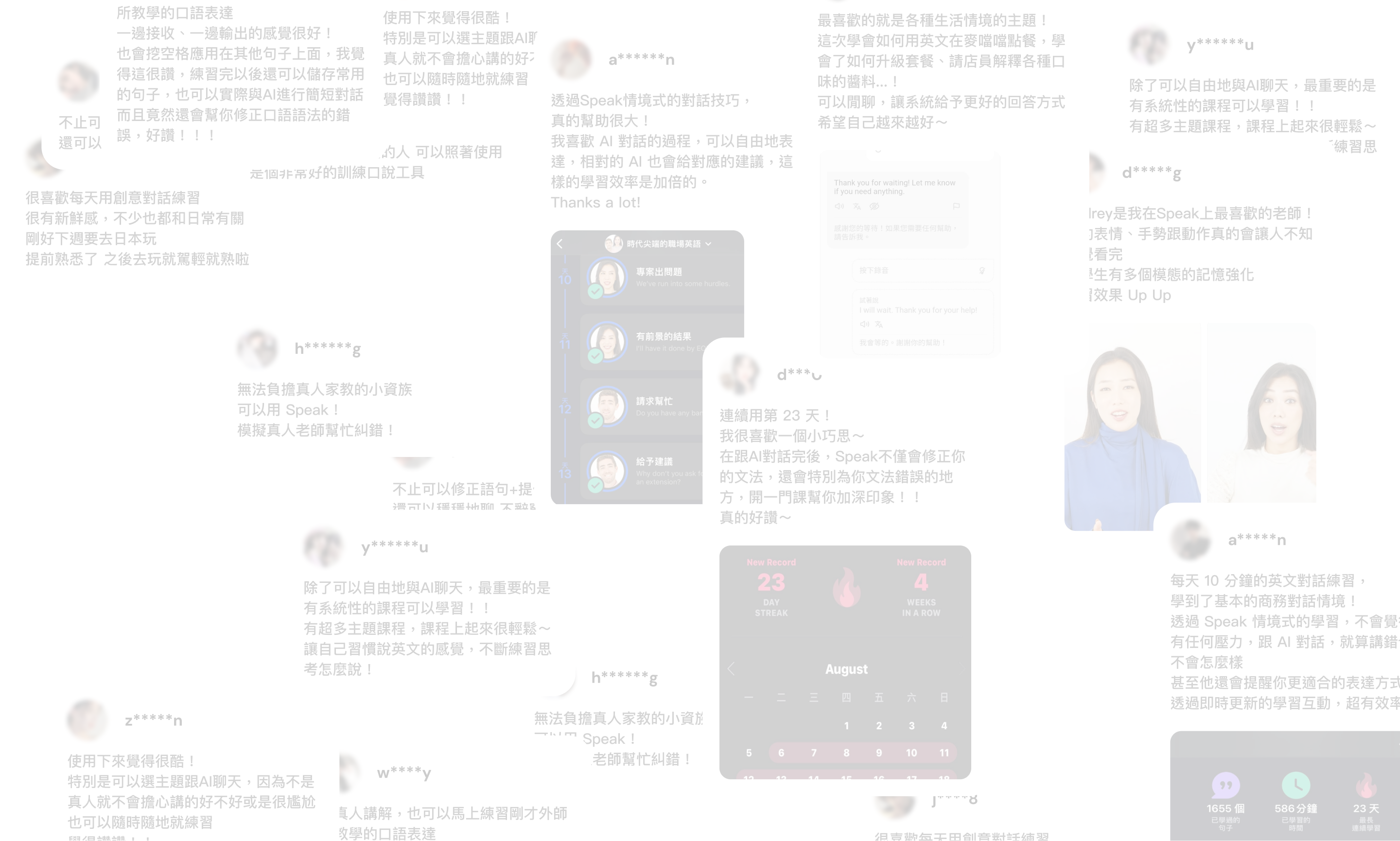 AI 回饋跟課程內容真的很有幫助,而且最重要的是很好玩!完全不會有壓力,會不知不覺一直開口說英文,現在幾乎每天都會打開來練習。