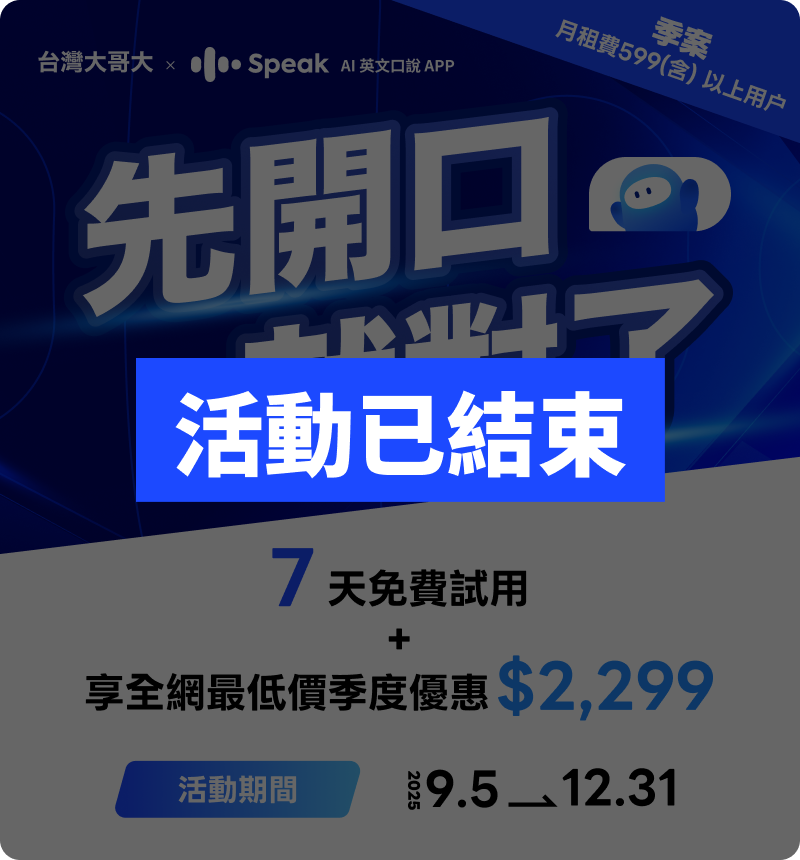 這次的季度方案是針對新用戶或尚未訂閱的使用者所設計,無法直接套用在現有訂閱上。如果你希望使用此優惠,需待訂閱期結束後再進行購買。若你不確定目前的帳號狀態,歡迎聯絡 Speak 中文客服團隊,我們會協助你進一步確認!