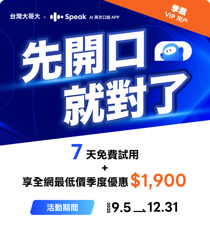 優惠價格及免費試用天數僅限於 Speak 活動專屬連結訂閱購買