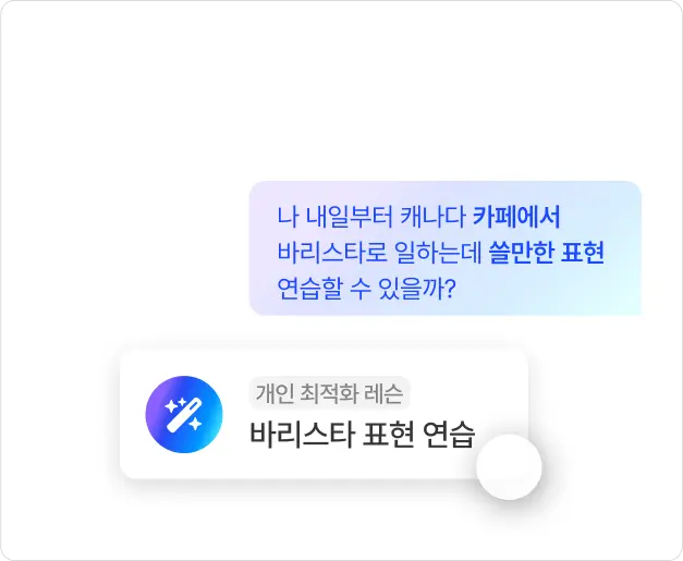 AI와 함께 다양한 실제 상황을 연습할 수 있어요. 여기까지 완료하면 실전 영어 회화 준비 끝!